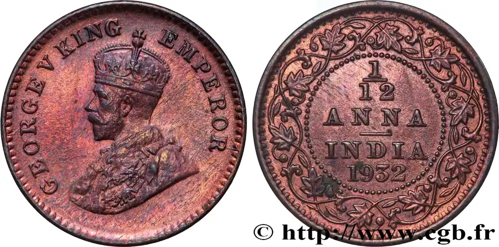 INDES BRITANNIQUES 1/12 Anna (1 Pie) Georges V 1932 Bombay fwo_822116 Monde Nouvel Arrivage
