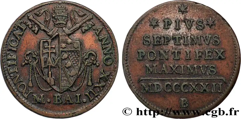 Dernière Chance ITALIE – ÉTATS DU PAPE – PIE VII (Barnaba Chiaramonti) 1/2 Baiocco 1822 Bologne fwo_825440 Monde