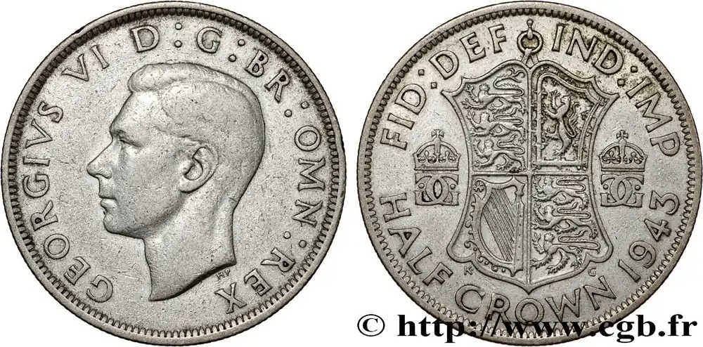 Expédié Aujourd’hui ROYAUME-UNI 1/2 Crown Georges VI 1943 fwo_814885 Monde