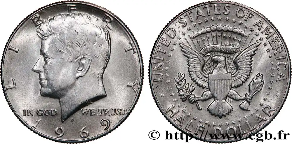 Prix Cassé ÉTATS-UNIS D’AMÉRIQUE 1/2 Dollar Kennedy 1969 Denver fwo_748956 Monde