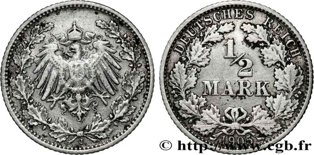 Gros Lot ALLEMAGNE 1/2 Mark Empire aigle impérial 1905 Hambourg fwo_861268 Monde