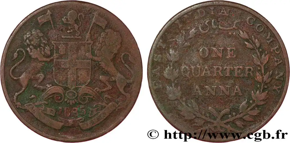 INDES BRITANNIQUES 1/4 Anna East India Company 1835 Calcutta fwo_808703 Monde Fait Main