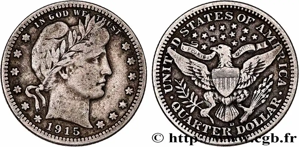 Livraison Mondiale ÉTATS-UNIS D’AMÉRIQUE 1/4 Dollar Barber 1915 Denver fwo_761152 Monde