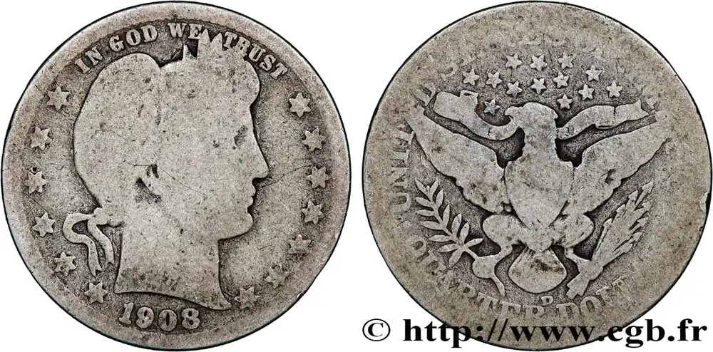 ÉTATS-UNIS D’AMÉRIQUE 1/4 Dollar Barber 1908 Denver fwo_790363 Monde Expédié Aujourd’hui