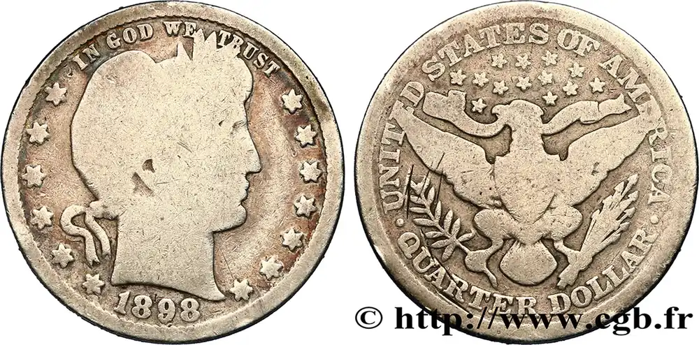 ÉTATS-UNIS D’AMÉRIQUE 1/4 Dollar Barber 1898 Philadelphie fwo_410393 Monde Vente Flash