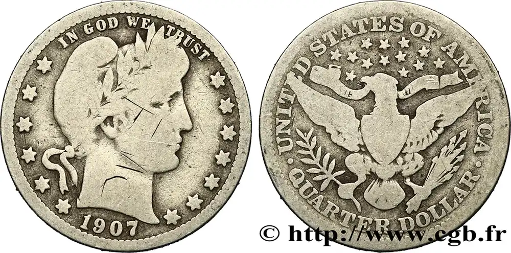 ÉTATS-UNIS D’AMÉRIQUE 1/4 Dollar Barber 1907 Philadelphie fwo_410419 Monde Affaire À Saisir