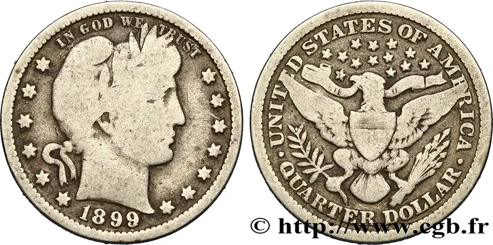 Livraison Mondiale ÉTATS-UNIS D’AMÉRIQUE 1/4 Dollar Barber 1899 Philadelphie fwo_410394 Monde