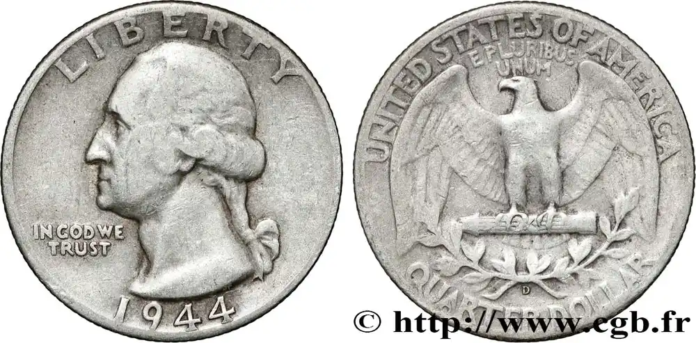 ÉTATS-UNIS D’AMÉRIQUE 1/4 Dollar Georges Washington 1944 Denver – D fwo_858793 Monde Meilleur Prix