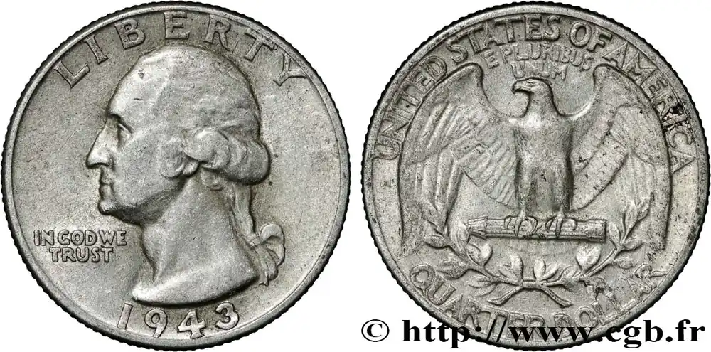 ÉTATS-UNIS D’AMÉRIQUE 1/4 Dollar Georges Washington 1943 Philadelphie fwo_856760 Monde Commander Vite