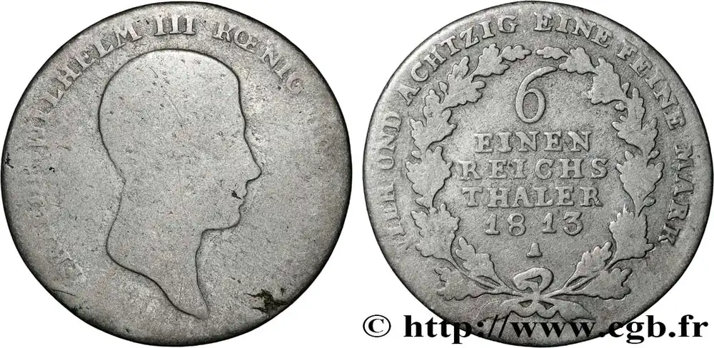 En Vogue ALLEMAGNE – PRUSSE 1/6 Thaler Frédéric-Guillaume III roi de Prusse 1813 Berlin fwo_854850 Monde