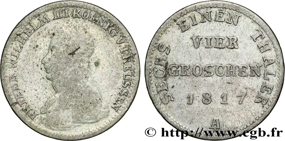 ALLEMAGNE – PRUSSE 1/6 Thaler Frédéric-Guillaume III roi de Prusse 1817 Berlin fwo_867422 Monde Acheter En Ligne