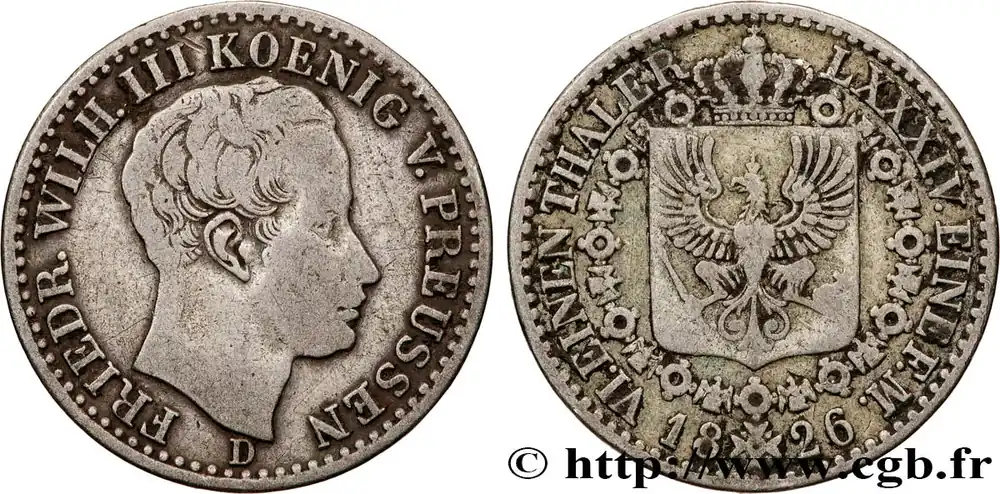 ALLEMAGNE – PRUSSE 1/6 Thaler Frédéric-Guillaume III roi de Prusse 1826 Berlin fwo_900625 Monde Gros Lot