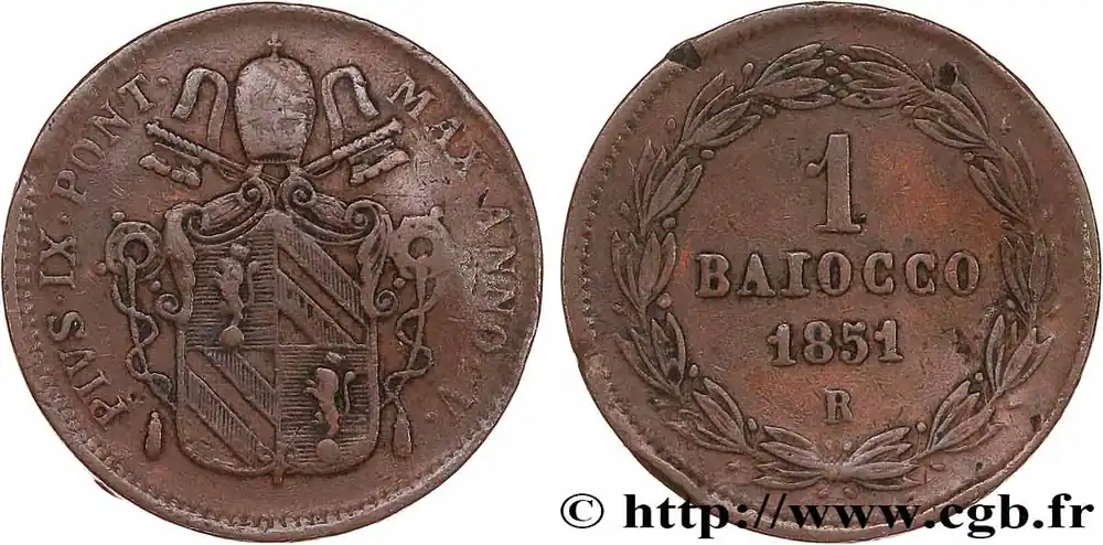 Dernière Chance VATICAN ET ÉTATS PONTIFICAUX 1 Baiocco Pie IX an V 1851 Rome fwo_774528 Monde