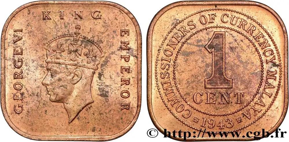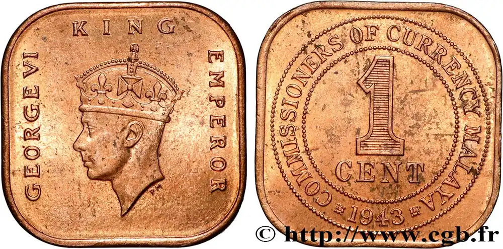 MALAISIE 1 Cent Georges VI 1943 fwo_852854 Monde Acheter Direct