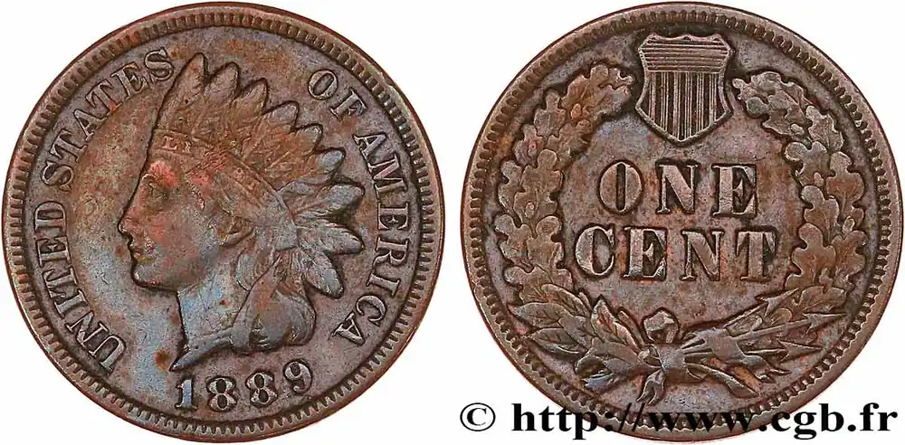 ÉTATS-UNIS D’AMÉRIQUE 1 Cent tête d’indien, 3e type 1889 Philadelphie fwo_766359 Monde Prix Choc