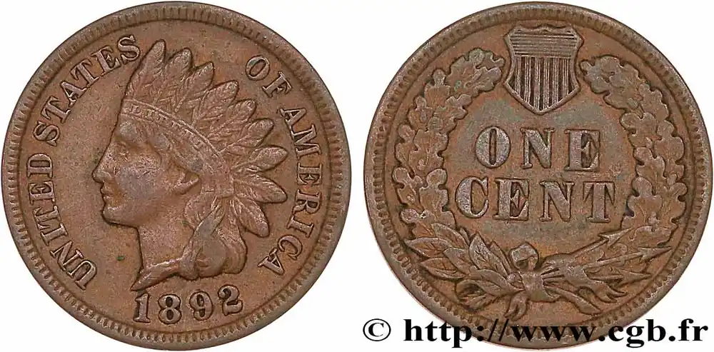 ÉTATS-UNIS D’AMÉRIQUE 1 Cent tête d’indien, 3e type 1892 Philadelphie fwo_771511 Monde Top Vente