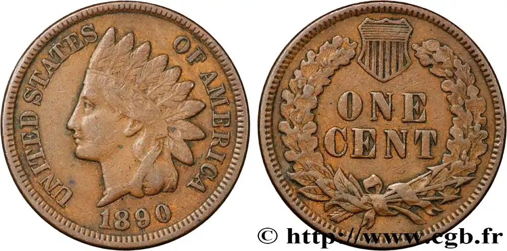 ÉTATS-UNIS D’AMÉRIQUE 1 Cent tête d’indien, 3e type 1890 Philadelphie fwo_868869 Monde Marque