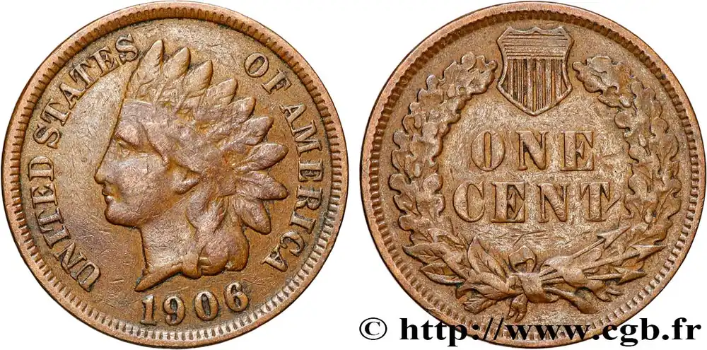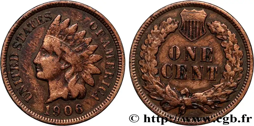 ÉTATS-UNIS D’AMÉRIQUE 1 Cent tête d’indien, 3e type 1906 Philadelphie fwo_885834 Monde Commander Maintenant