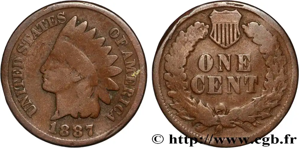 Livraison Gratuite ÉTATS-UNIS D’AMÉRIQUE 1 Cent tête d’indien, 3e type 1887 Philadelphie fwo_887046 Monde
