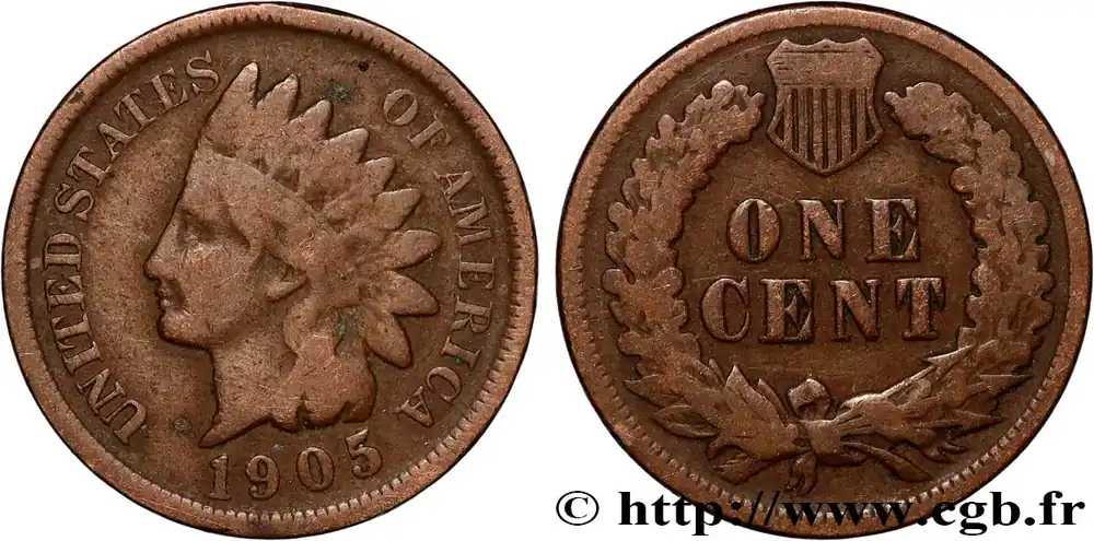 ÉTATS-UNIS D’AMÉRIQUE 1 Cent tête d’indien, 3e type 1905 Philadelphie fwo_887050 Monde Quantité Limitée