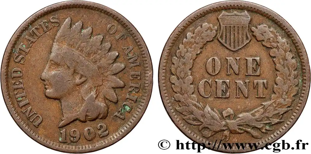 ÉTATS-UNIS D’AMÉRIQUE 1 Cent tête d’indien, 3e type 1902 Philadelphie fwo_900621 Monde Exclusif