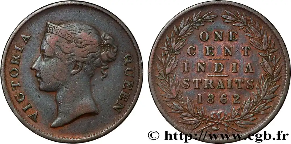 Authentique ÉTABLISSEMENTS DES DÉTROITS 1 Cent Victoria 1862 fwo_834820 Monde
