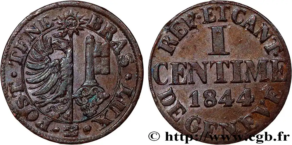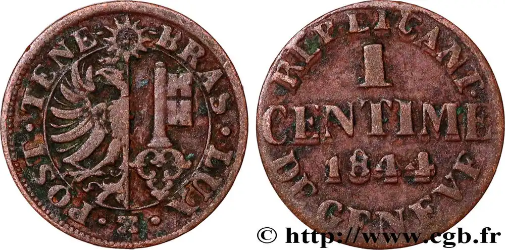 Haute Qualité SUISSE – RÉPUBLIQUE DE GENÈVE 1 Centime 1844 fwo_745382 Monde