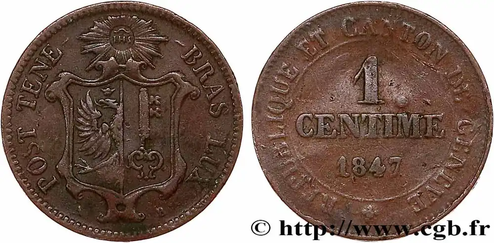 Livraison Mondiale SUISSE – RÉPUBLIQUE DE GENÈVE 1 Centime 1847 fwo_802876 Monde