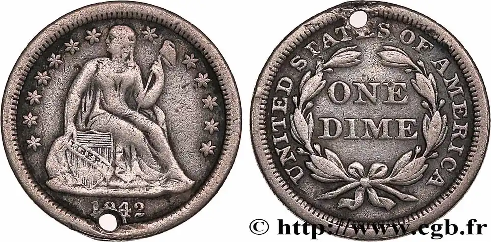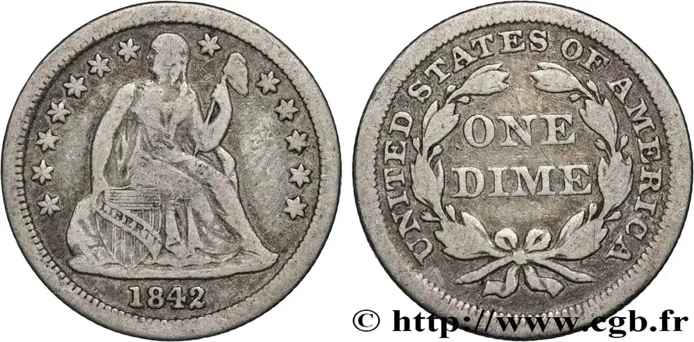 ÉTATS-UNIS D’AMÉRIQUE 1 Dime (10 Cents) Liberté assise 1842 Philadelphie fwo_830650 Monde Marque
