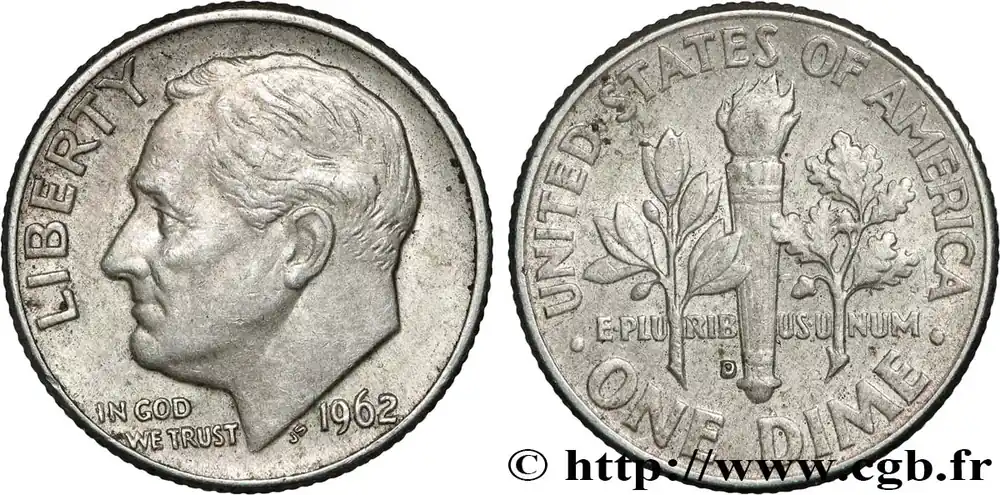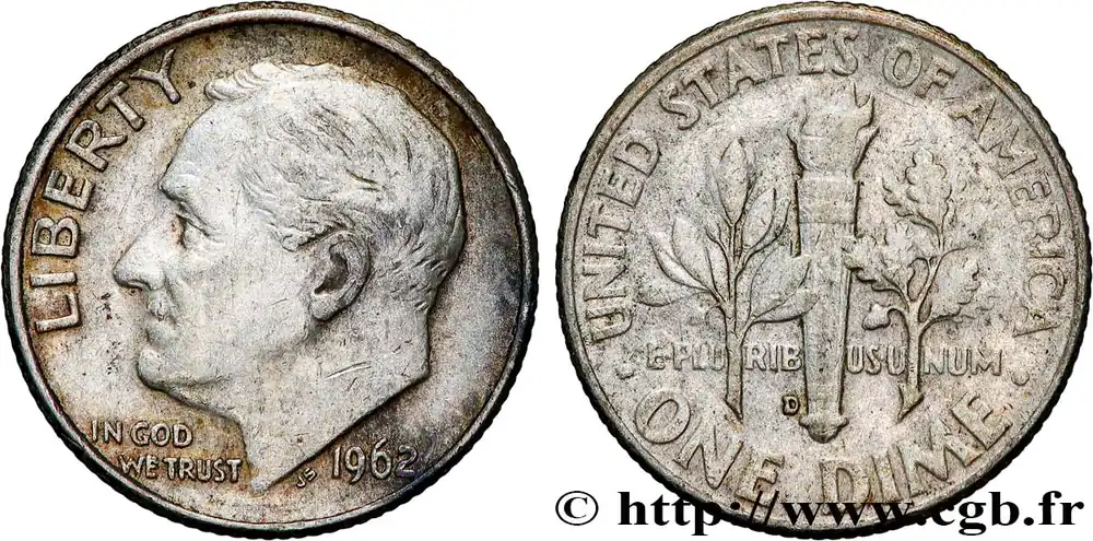 ÉTATS-UNIS D’AMÉRIQUE 1 Dime (10 Cents) Roosevelt 1962 Denver fwo_838759 Monde Nouvelle Collection