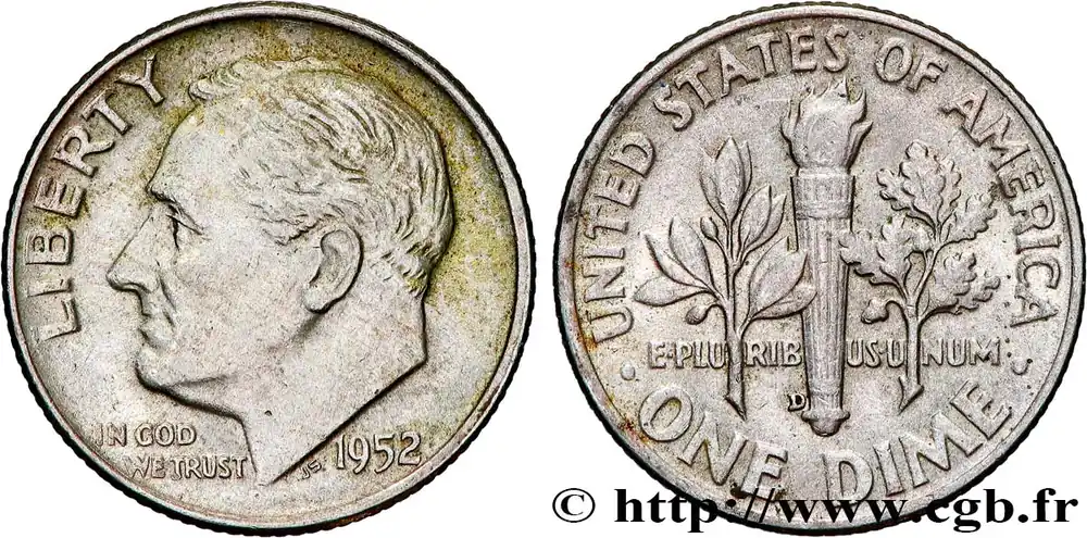 ÉTATS-UNIS D’AMÉRIQUE 1 Dime(10 Cents) Roosevelt 1952 Denver fwo_838797 Monde Original