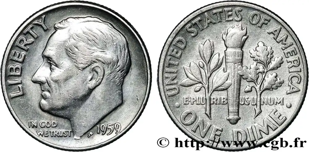 ÉTATS-UNIS D’AMÉRIQUE 1 Dime(10 Cents) Roosevelt 1959 Philadelphie fwo_765444 Monde Prix Cassé