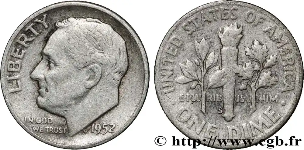 ÉTATS-UNIS D’AMÉRIQUE 1 Dime(10 Cents) Roosevelt 1952 San Francisco fwo_858844 Monde Livraison Express