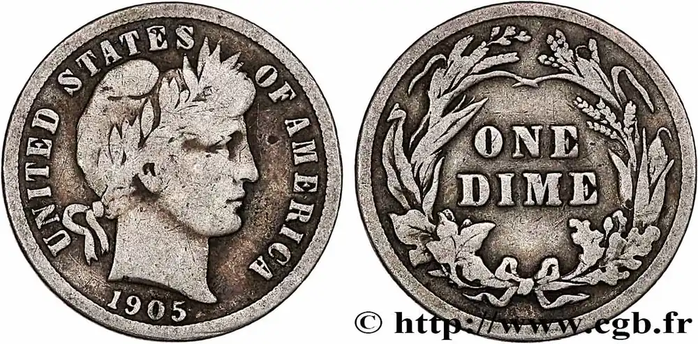 ÉTATS-UNIS D’AMÉRIQUE 1 Dime Barber 1905 Philadelphie fwo_754457 Monde Meilleure Vente