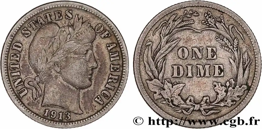 ÉTATS-UNIS D’AMÉRIQUE 1 Dime Barber 1913 Philadelphie fwo_776983 Monde Must-Have