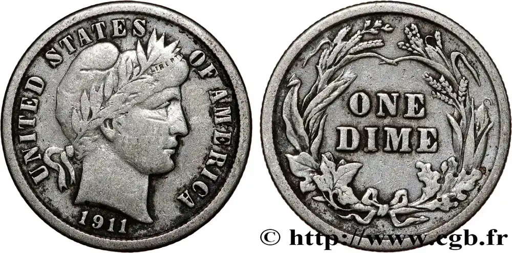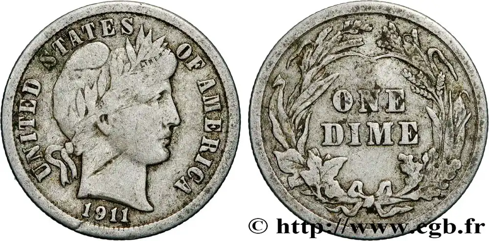 ÉTATS-UNIS D’AMÉRIQUE 1 Dime Barber 1911 Philadelphie fwo_879921 Monde Prix Cassé