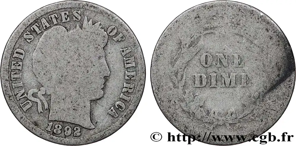 ÉTATS-UNIS D’AMÉRIQUE 1 Dime Barber 1892 Philadelphie fwo_793802 Monde Usine Directe