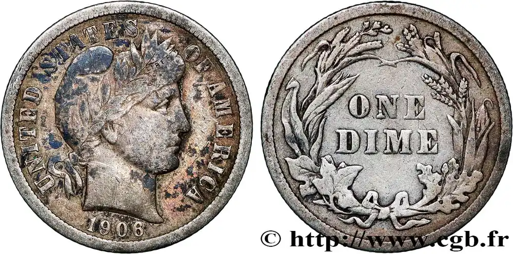 ÉTATS-UNIS D’AMÉRIQUE 1 Dime Barber 1906 Philadelphie fwo_793563 Monde Vente Directe