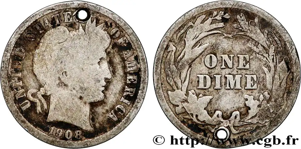 ÉTATS-UNIS D’AMÉRIQUE 1 Dime Barber 1908 Philadelphie fwo_789702 Monde Livraison Gratuite