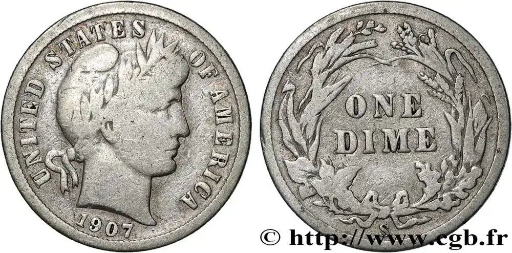Certifié ÉTATS-UNIS D’AMÉRIQUE 1 Dime Barber 1907 San Francisco fwo_833681 Monde