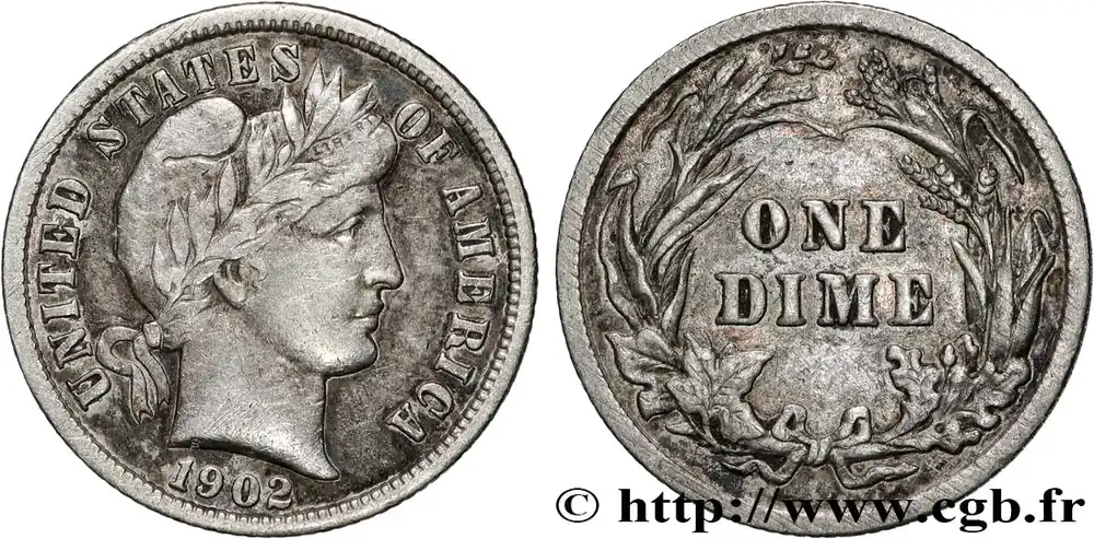ÉTATS-UNIS D’AMÉRIQUE 1 Dime Barber 1902 Philadelphie fwo_833688 Monde Artisanat