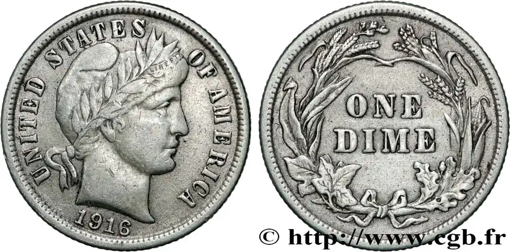 Original ÉTATS-UNIS D’AMÉRIQUE 1 Dime Barber 1916 Philadelphie fwo_861211 Monde