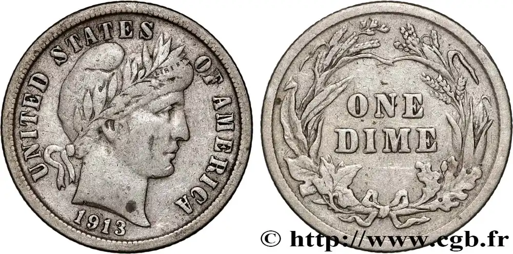 ÉTATS-UNIS D’AMÉRIQUE 1 Dime Barber 1913 Philadelphie fwo_793678 Monde Fait Main