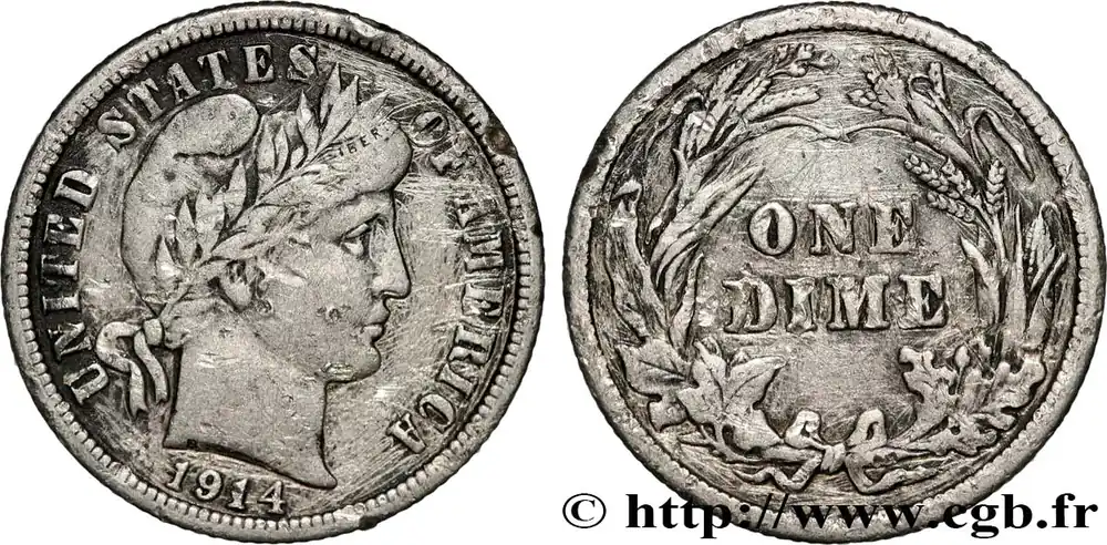 ÉTATS-UNIS D’AMÉRIQUE 1 Dime Barber 1914 Philadelphie fwo_853589 Monde Original