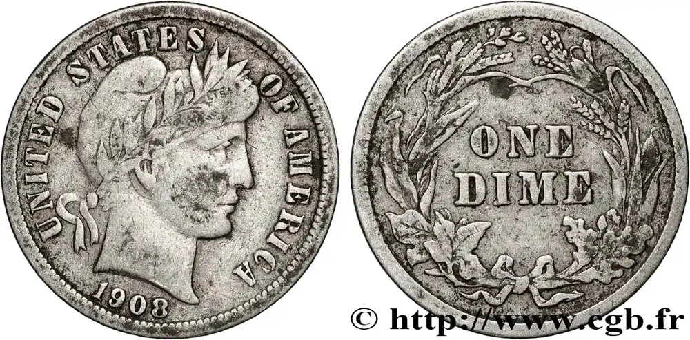 Marque ÉTATS-UNIS D’AMÉRIQUE 1 Dime Barber 1908 Philadelphie fwo_879922 Monde
