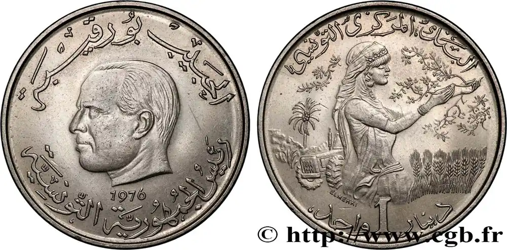 TUNISIE 1 Dinar Habib Bourguiba type FAO 1976 Paris fwo_873932 Monde Soldes