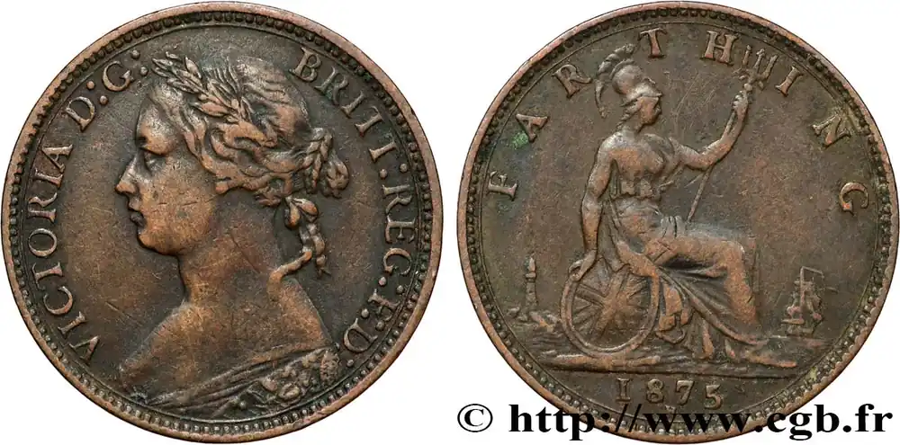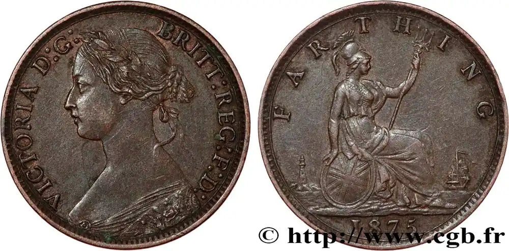 Achetez Aujourd’hui ROYAUME-UNI 1 Farthing Victoria “Bun Head” 1875 Heaton – H fwo_854172 Monde