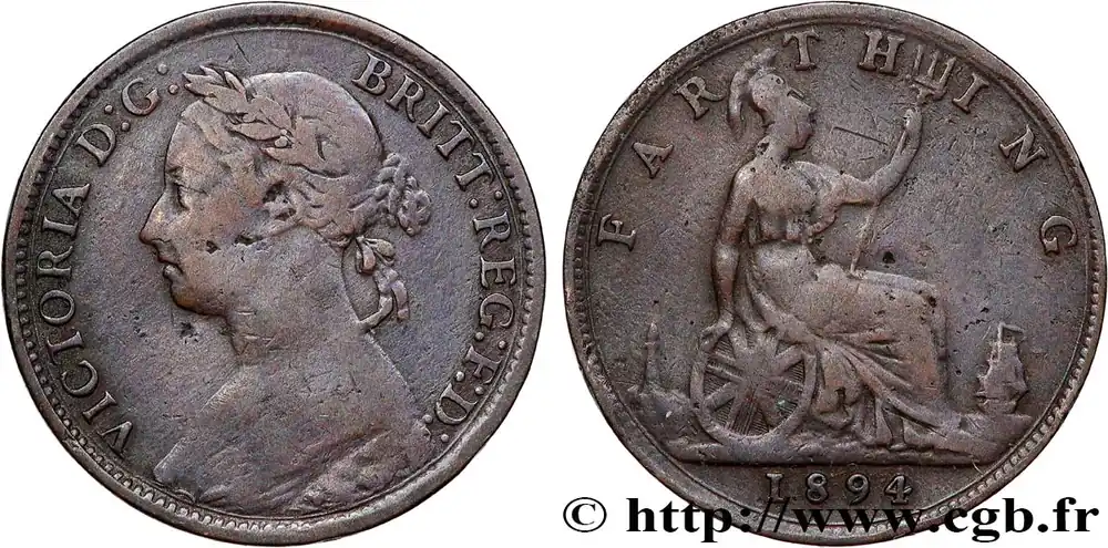 ROYAUME-UNI 1 Farthing Victoria “Bun Head” 1894 fwo_824142 Monde Tendance