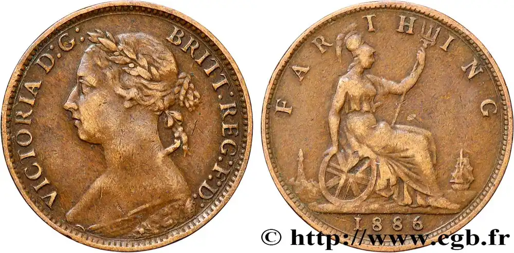 ROYAUME-UNI 1 Farthing Victoria “Bun Head” 1886 fwo_876812 Monde Meilleure Qualité