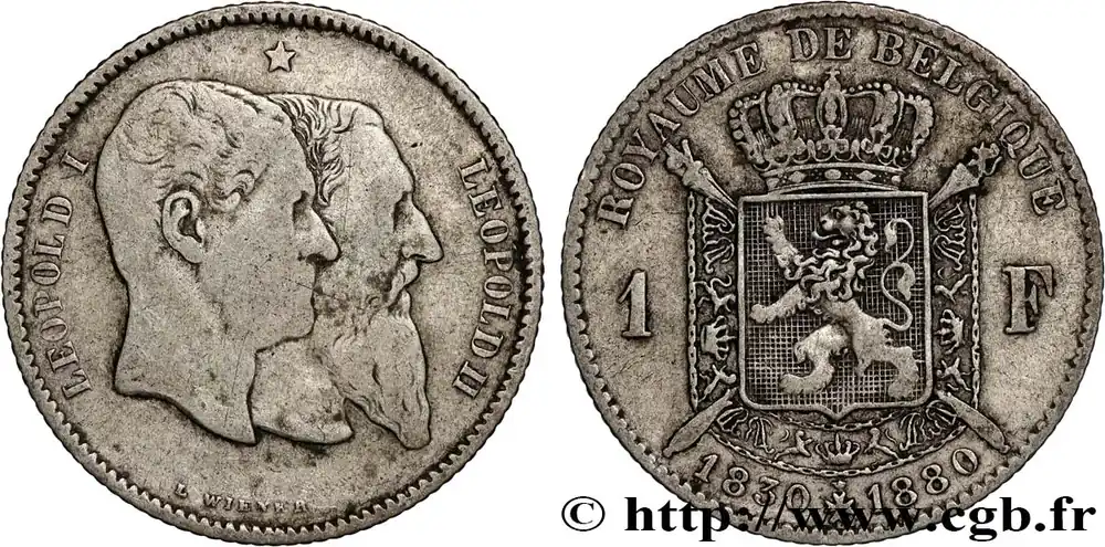 BELGIQUE 1 Franc 50e anniversaire de l’indépendance 1880 fwo_885636 Monde Petit Prix
